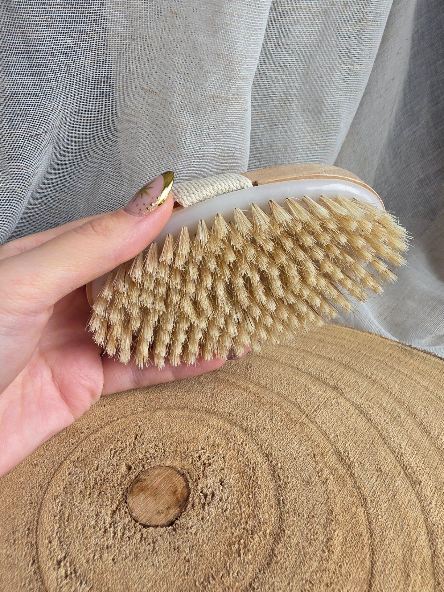 Brosse de massage à sec pour un rituel de bien-être quotidien. Stimule le corps, réveille l’énergie et invite à une reconnexion profonde à soi.