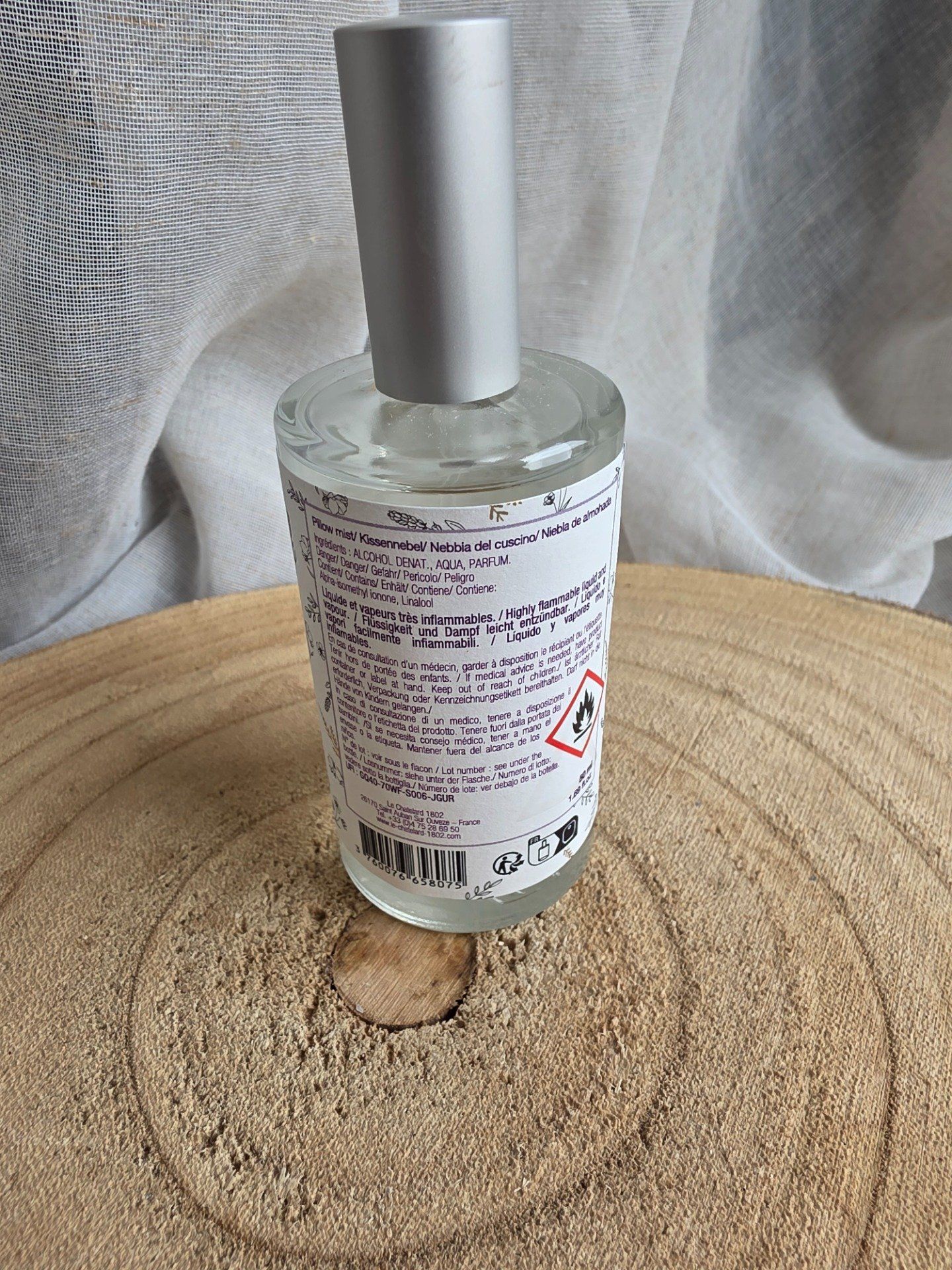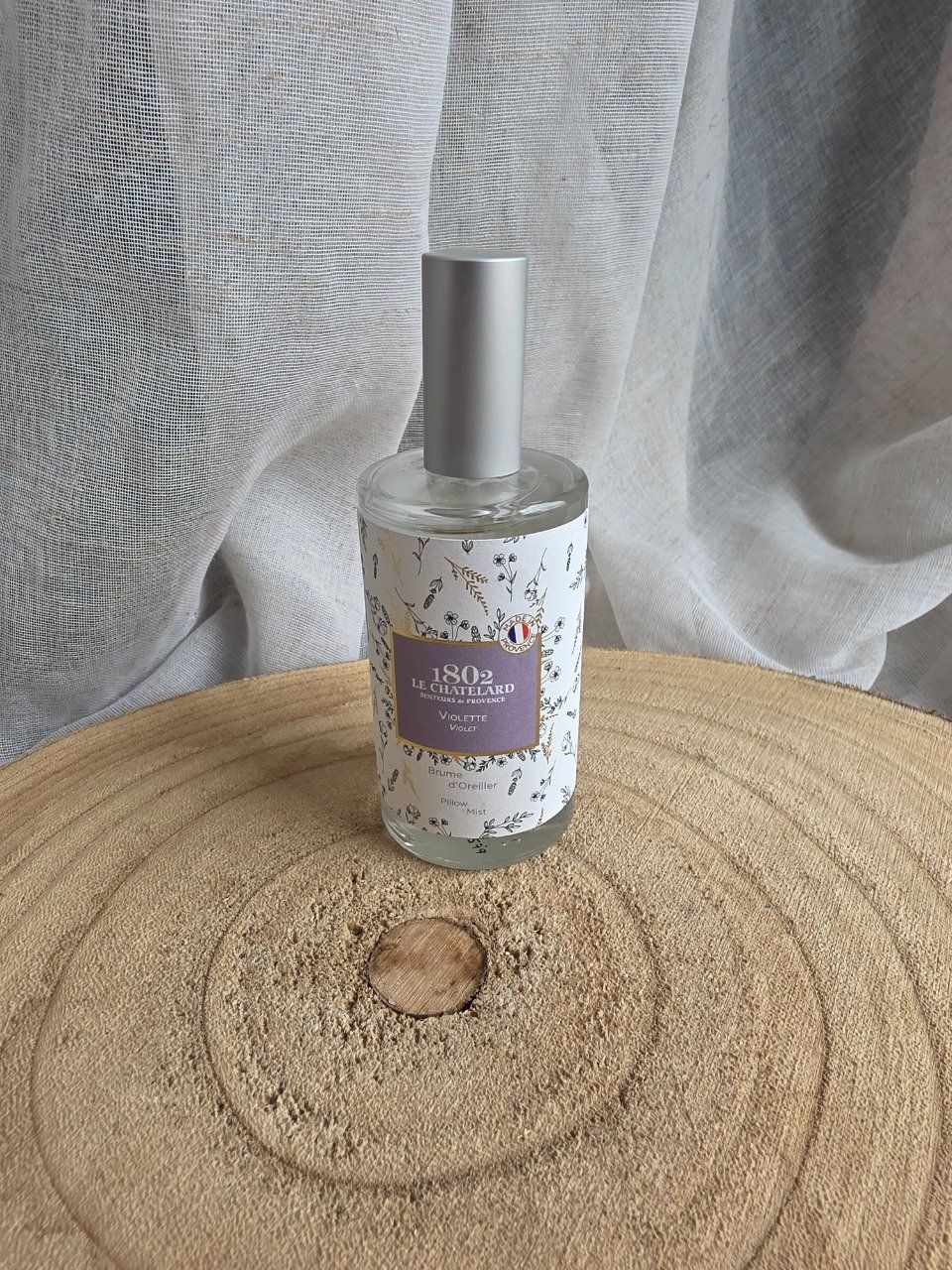 Offrez à votre linge de lit un parfum floral gourmand grâce à la Brume d’Oreiller Violette de Le Chatelard 1802. Fabriquée en Provence, à Saint-Auban-sur-l’Ouvèze, cette brume apporte fraîcheur et délicatesse à vos rituels du coucher.